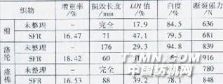 2.3 SFR整理 將阻燃劑sFR分別處理棉、滌綸和滌棉織物。測試整理品的燃燒性,如表5所示。表5棉、滌綸和滌棉織物SFR整理后的性能