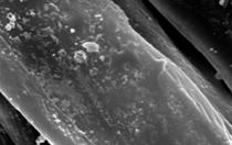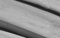 4.3 SEM對納米整理劑在織物表面的存在狀態(tài)測定結(jié)果表明,納米整理劑在纖維上呈非均勻漿膜分布并可見堆積現(xiàn)象。