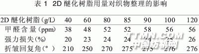 3.結(jié)果與討論 3.1 2D醚化樹(shù)脂用量對(duì)織物整理的影響(表1)