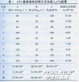 2.1ATO整理滌綸織物正交實(shí)驗(yàn)