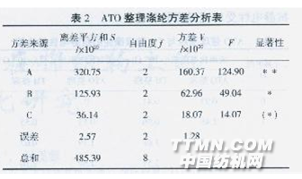 ATO整理滌綸織物正交實(shí)驗(yàn)[L9(34)]結(jié)果見表1,ATO整理滌綸方差分析見表2..png)