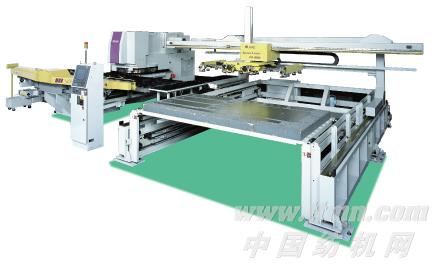 因X,Y,Z 3軸用伺服電機驅動將從板材上取下的工件按多種 方式堆放素材→不需用分料。