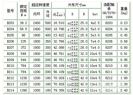 B200型即國外B型200系列,為無內環無軸承支撐的楔塊式單向超越離合器。使用時直接將軸安裝在離合器內。所以用于離合器安裝的軸在磨削后需要硬化處理至HRC58-62,軸的錐度每50mm不應超過0.01mm,外環與機壁用鍵槽方式安裝。為保證軸和離合器外環的同心度,承受外環和軸的徑向或軸向負載,使用時必須在離合器的兩端或一端并排裝上軸承,提供潤滑油脂供應及外部油封,方能達到最佳效果。