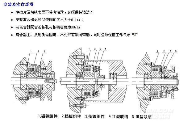 安裝離合器時,請配合一滾珠軸承,并注意軸心與外圈須保持同一中心,以防軸向應力與徑向應力,亦可參考安裝范例。