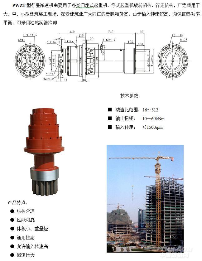 特點:結構合理、 性能可靠、體積小、重量輕,、通用性高,、允許輸入轉速高、減速比大。 應用領域:本系列減速機主要用于各類門座式起重機、浮式起重機旋轉機構、行走機構,廣泛使用于大、中、小型建筑施工現場,深受建筑業廣大同仁的青睞和贊賞。由于輸入轉速較高,為保證熱功率平衡,可采用油站潤滑冷卻. 技術參數:減速…