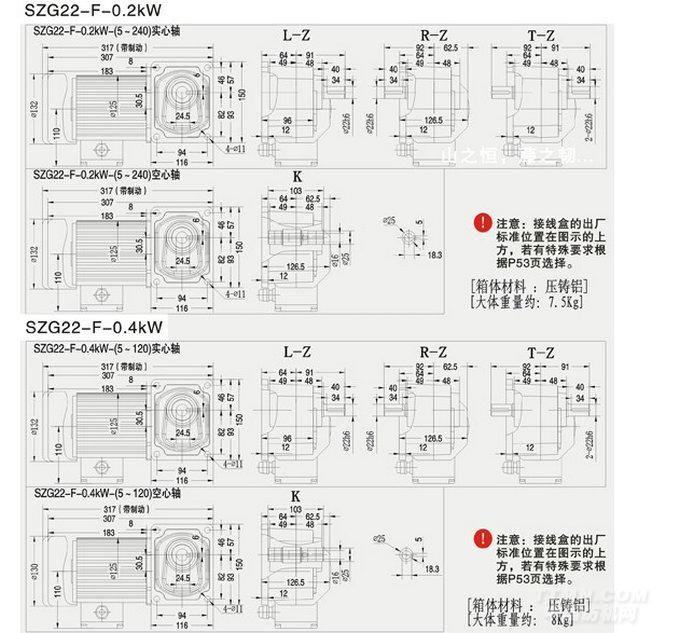 SZG-F直交軸中型22框減速機圖紙及參數: