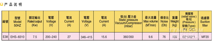 產品型號: EHS8310額定功率:null電壓:null風量:null風壓:null轉速/極數:null安裝方式:null