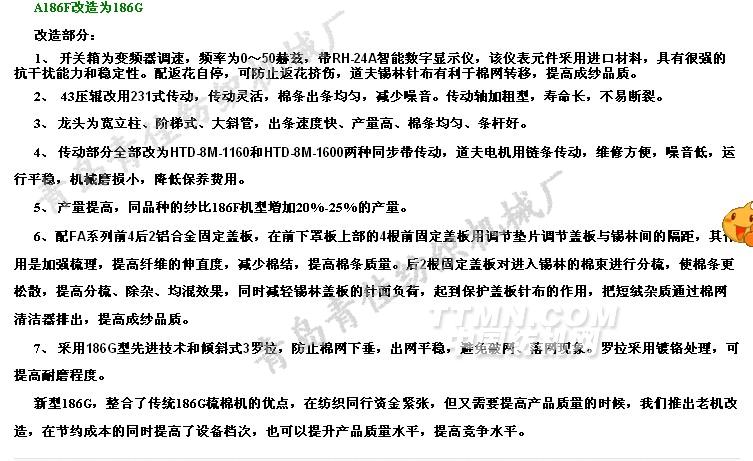 您所在的位置:紡機網 >> 青島青佳紡織機械廠 >> 提供梳棉機老機改造