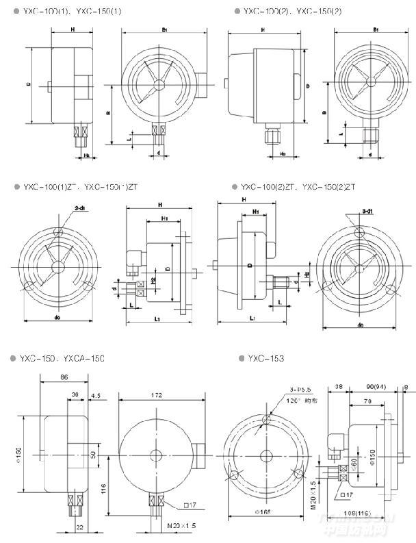 YXC-100、YXC-150磁助電接點(diǎn)壓力表