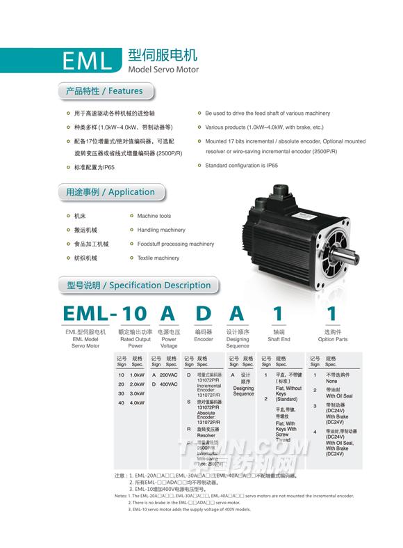 您所在的位置:紡機網 >> 南京埃斯頓工業自動化有限公司 >> EML型伺服電機