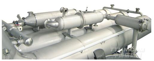 (1)是由于加入筒狀殼體的蒸氣在對換熱管加熱后,直接從筒狀殼體的出口白白排放掉,只能一次性使用,不僅熱量的利用率低(通常只有35%左右)而且對水資源的浪費嚴重。