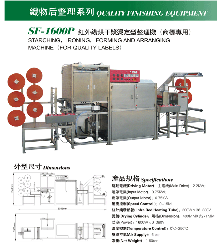 您所在的位置:紡機網 >> 麥斯特(香港)有限公司廣州辦事處 >> sf-1600p紅外線烘干漿燙定型整理機(商標專用)