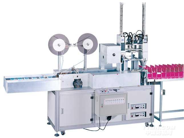 口罩綁帶包裝機主要是將帶型耳帶熔接于口罩片體上兩端后全自動包裝入盒的自動化口罩綁帶包裝機,主體采用優質鋁合金材料,外觀精美。面板采用硬化處理,PLC微電腦控制,自動張力控制系統,運行更加穩定。