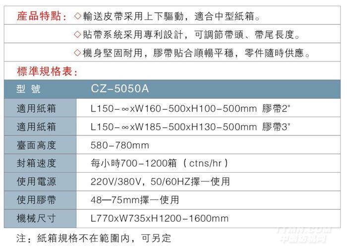 您所在的位置:紡機網 >> 正洲包裝機械(東莞)有限公司 >> CZ-5050A 自動封箱機
