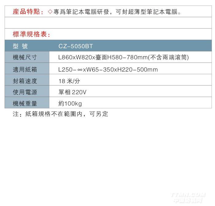 您所在的位置:紡機網(wǎng) >> 正洲包裝機械(東莞)有限公司 >> 自動封箱機CZ-5050BT
