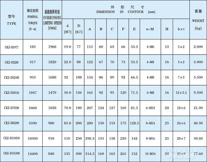 您所在的位置:紡機(jī)網(wǎng) >> 咸陽(yáng)超越離合器有限公司 >> 單項(xiàng)離合器系列CKZ-D