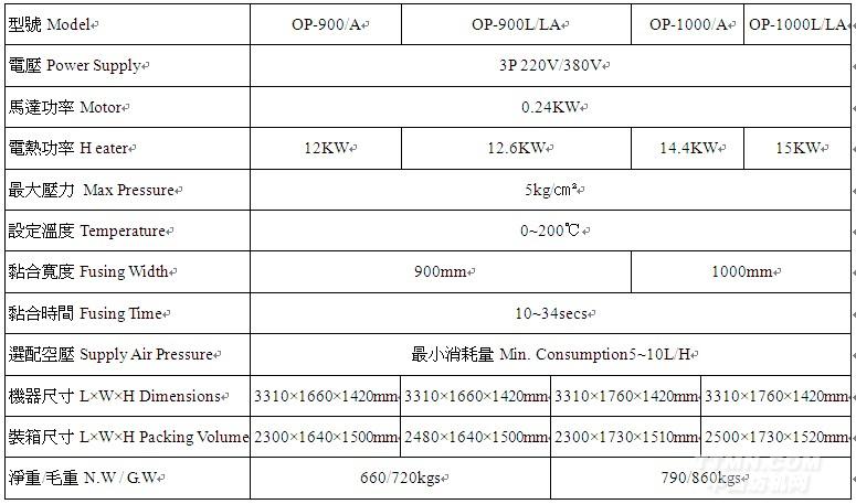 OP-900/900A/900L/900LA OP-1000/1000A/1000L/1000LA連續(xù)式黏合機