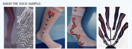 可產生平板襪、移圈襪、女士長筒襪。可作每路3色提花,加底色為5色,可做集圈、禁針花樣。