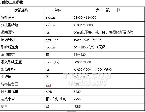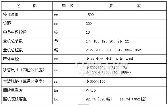 1. 紡紗器錠距為230毫米,是目前國產機中錠距最大的一種機型。紡紗器為當代最先進的抽氣式結構,具有排雜效果好,成紗質量優良的特點。