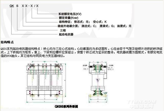 交流異步電動機在額定電壓下起動時,初始起動電流將是很大的,往往超過額定電流的許多倍(一般是5-7倍),為了減少起動電流,不使對電網(wǎng)造成影響,通常用降低電壓的方法來起動交流異步電動機,常用的降壓方法是采用電抗器或自耦變壓器,交流電動機的起動過程很短(一般數(shù)秒鐘至二分鐘),起動后就將降壓起動用電抗器或自耦變壓器切除。本產(chǎn)品是根據(jù)Y系6KV或10KV高壓異步電動機的起動特性設(shè)計的起動電抗器,適應(yīng)范圍220KW-1400KW。也可根據(jù)用戶具體電動機的型號及要求設(shè)計各種起動電抗器。