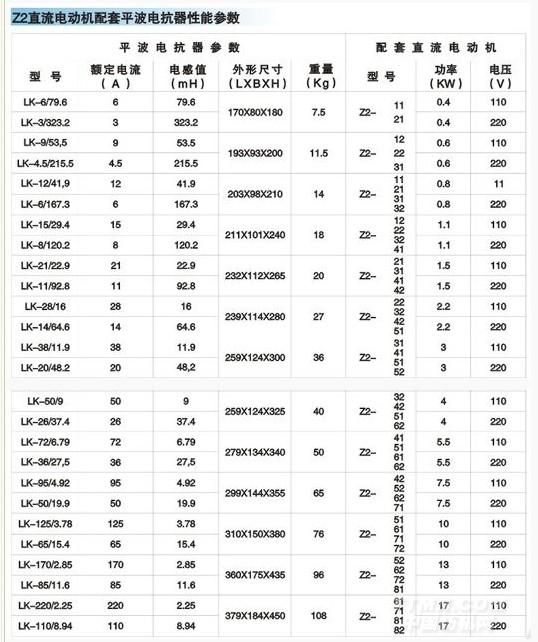 平波電抗器亦稱濾波電抗器或濾波阻流圈,用于整流回路之中,消除整流后的波紋脈動成份,按三相全波整流回路電壓波形計算,平波電抗器的脈沖頻率是300赫茲。本系列產品的額定電流和額定電感均是按照Z2系列直流電動機需要設計的,既考慮到限止電流的脈動成份,又考慮到電流連續不斷,用綜合法求取各種電動機的電感值,不讓整流電流脈動成份過大而引起換向惡化。