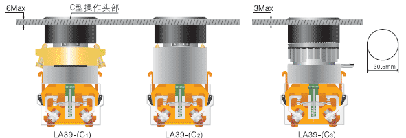 LA39-(C)系列按鈕開關:采用螺帽緊固方式,樸實簡潔,降低安裝難度,減輕了用戶工作強度。受環境溫度影響會降低安裝可靠性,建議使用旋鈕、鑰匙鈕等帶旋轉工作狀態時不宜采用Z3中座安裝模式。如A3選擇使用旋鈕需加擋圈,開孔形狀如右圖