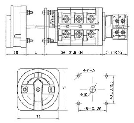 LW39-16系列轉換開關外型尺寸和安裝尺寸