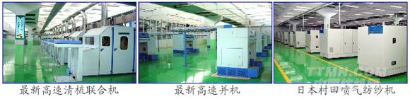 公司擁有二十余臺日本村田噴氣紡紗機、高產清梳聯合機、高速并條機等全套先進的紡紗設備,常年批量生產多種綠色、生態、環保的新型噴氣紡紗線。