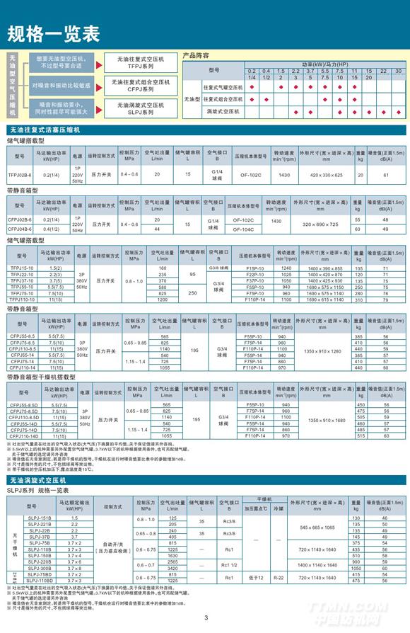 無油活塞式空氣壓縮機帶靜音箱型干燥機搭載型詳細參數