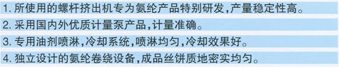 本公司生產的氨綸設備,經公司多年研究和探索,產品具有生產速度穩定,絲錠成品質量好的特點。
