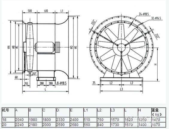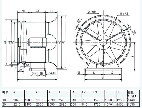 JYPW-1型噴霧軸流通風機主要用于紡織廠空調室,亦可用于其他空調場合的加濕送風。JYPW-1型噴霧軸流通風機設計有No.18、20共兩種機號,傳動方式有A式和C式,結構形式為壓入式,安裝形式為落地式。