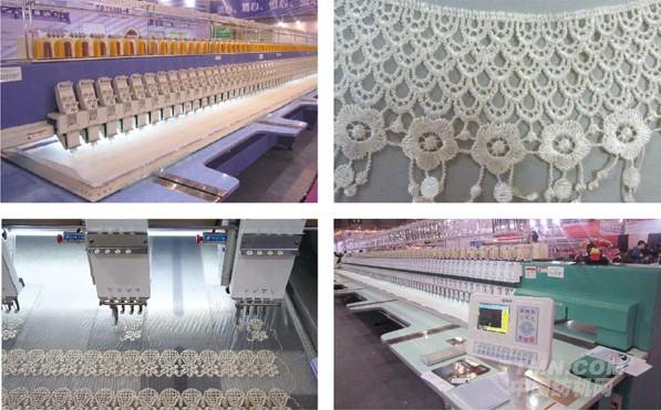 高速和多頭是近幾年繡花機(jī)產(chǎn)業(yè)的主要發(fā)展方向,其核心目標(biāo)就是提高單臺繡花機(jī)生產(chǎn)率。高速可以實(shí)現(xiàn)單位時間內(nèi)刺繡針數(shù)的提高,多頭可以實(shí)現(xiàn)同一時間繡作更多的產(chǎn)品。近兩年來,超多頭刺繡機(jī)已經(jīng)在整個刺繡機(jī)行業(yè)悄然興起,大幅效率的提升是該種機(jī)型的亮點(diǎn)所在。特別是水溶花邊加工市場,超多頭刺繡機(jī)已經(jīng)開始逐步替換和淘汰以前的普通刺繡機(jī),機(jī)器的加工幅面也從原來的5碼,提升到7.5碼,甚至10碼左右,加工幅面大小和效率可以替代傳統(tǒng)飛梭式刺繡機(jī)。超多頭刺繡機(jī)可以產(chǎn)生普通刺繡機(jī)將近一倍的利潤。