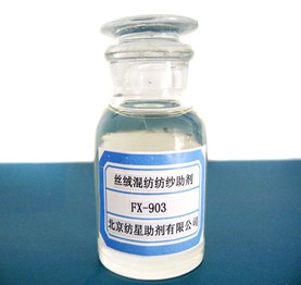 FX-903是精制白油、乳化劑、抗靜電劑和殺菌劑等復(fù)配而成。FX-903具有良好的滲透性、潤(rùn)滑性、抱合性。在羊絨/蠶絲混紡紡紗過程中能明顯地減少飛毛,降低斷頭率,提高產(chǎn)品制成率,并能有效地增加紡線均勻性,降低紗線CV值,及減少毛粒、粗節(jié)、細(xì)節(jié)。在粗紡及精紡、半精紡紡紗過程中,與抗靜電劑FX-AS20或FX-AS30配合使用,能明顯地改善紡紗生活,消除靜電,減少纏饒現(xiàn)象,能減少紗線的毛羽,使紗線光潔,是用于蠶絲/羊絨或者羊毛混紡紗的專用助劑。