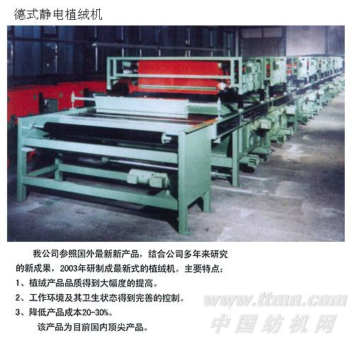 您所在的位置:紡機(jī)網(wǎng) >> 無錫市鵬程植絨機(jī)械有限公司 >> 德式靜電植絨機(jī)