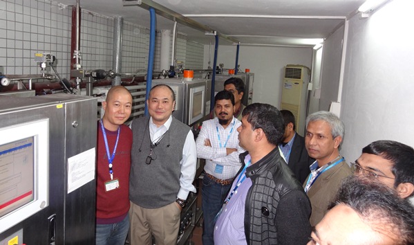 除參觀立信染整生產(chǎn)基地外,翌日亦安排參觀兩個(gè)國內(nèi)客戶的生產(chǎn)廠房:錦興紡織及東海鵬紡織。孟加拉客戶可在當(dāng)中親睹以立信染整高溫染色機(jī)、特恩氣流染色機(jī)組合及立信門富士定形系列之生產(chǎn)線。廣州東海鵬染整紡織有限公司的李志勇總經(jīng)理更親自帶領(lǐng)海外友人參觀廠房。李總亦不吝分享經(jīng)驗(yàn)、交流心得。