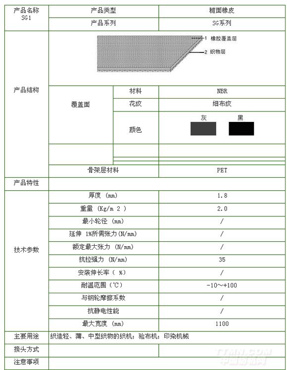 您所在的位置:紡機網 >> 濟南天齊特種平帶有限公司 >> 紡織/糙面橡皮SG1