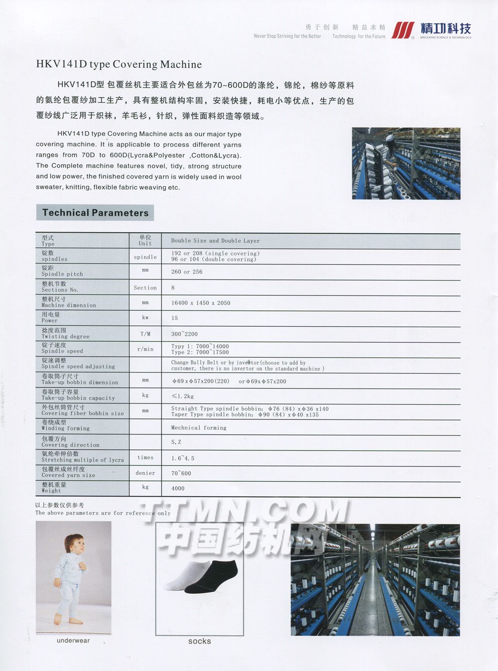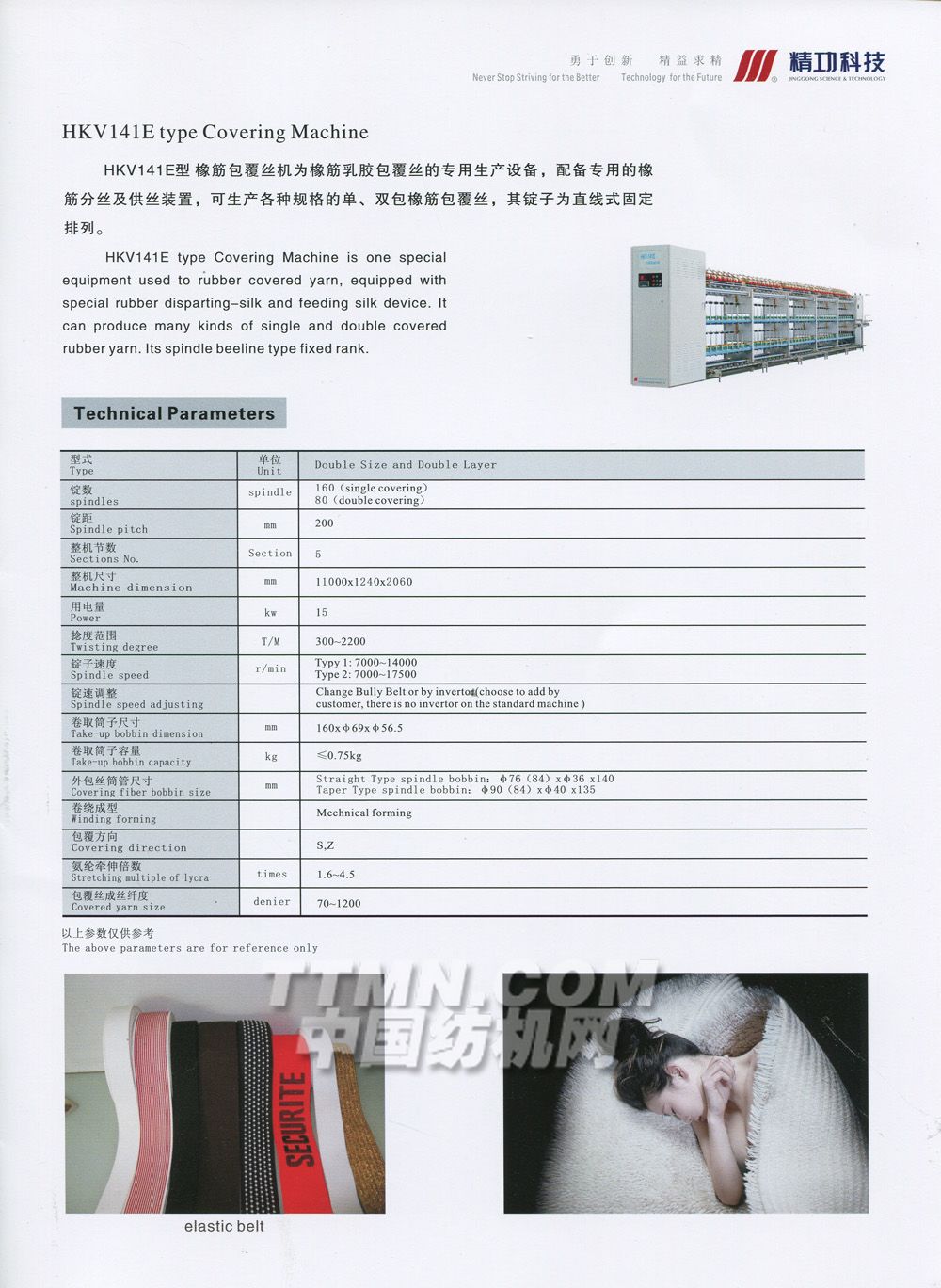 HKV141D型包覆絲機主要適合外包絲為70-600D的滌綸,錦綸,棉紗等原料的氨綸包覆紗加工... [詳細]