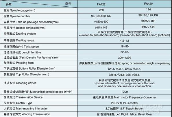 FA422/FA420型懸錠粗紗機(jī)結(jié)構(gòu)設(shè)計(jì)先進(jìn)性能穩(wěn)定可靠,成紗質(zhì)量好,便于操作維護(hù),適用于普梳、精梳棉纖維及棉型化學(xué)纖維的純紡或混紡。