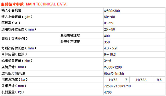 HY68型精梳機(jī)是我公司在吸收國(guó)內(nèi)外先進(jìn)技術(shù)的基礎(chǔ)上自行設(shè)計(jì)研制開發(fā)的新型棉紡設(shè)備,HY68A型精梳機(jī)又是在HY68型精梳機(jī)的基礎(chǔ)上進(jìn)一步提高了機(jī)電一體化及自動(dòng)化程度。該機(jī)具有高速高產(chǎn)、梳理效果好、噪音低、操作簡(jiǎn)單、能耗低、機(jī)電一體化程度高等優(yōu)勢(shì),是進(jìn)行精梳工藝的良好設(shè)備。