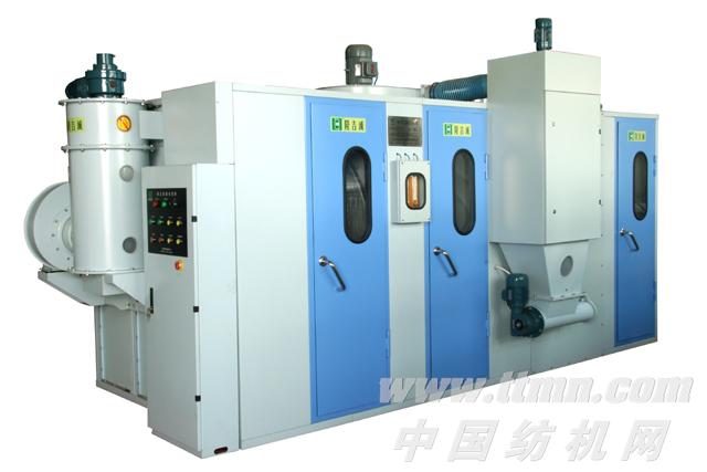 一、 產(chǎn)品用途:該機(jī)可用于棉、麻、毛、化纖等行業(yè)的空調(diào)濾塵系統(tǒng),過濾和收集空氣中的纖維粉塵,以達(dá)到凈化空氣的目的二、 結(jié)構(gòu)特點(diǎn):1、 占地面積小,在處理風(fēng)量較大時(shí),占地面積可比其它濾塵設(shè)備減少約為15%.2、 采用不銹鋼絲風(fēng)和長毛絨二級(jí)過濾,纖維與短絨和粉塵分別回收,提高纖維的利用率。3、 濾筒部件由多個(gè)直徑大小不同的錐形筒體及插片式濾料網(wǎng)板組成,結(jié)構(gòu)簡單新穎,更換濾料方便、快捷。4、 采用長毛絨濾料,阻力小,過濾效率高,阻燃5、 濾料由網(wǎng)板支承,不會(huì)鼓起,保證集塵吸嘴貼附于小料,吸塵可靠,效果好。6、 吸嘴部件由多個(gè)可調(diào)吸嘴和吸塵管組成,每個(gè)濾筒內(nèi)采脾雙吸嘴吸塵,從而縮短了吸臂往復(fù)運(yùn)動(dòng)的行程,清潔速度快。7、 二級(jí)傳動(dòng)機(jī)構(gòu)只由一臺(tái)減速機(jī)傳動(dòng),采用皮帶傳動(dòng)方式,通過簡單實(shí)用的往復(fù)絲杠巧妙地將單一的加轉(zhuǎn)運(yùn)動(dòng)抽象成旋轉(zhuǎn)加往復(fù)的復(fù)合運(yùn)動(dòng)。從而滿足吸嘴的動(dòng)作要求。整個(gè)傳動(dòng)機(jī)構(gòu)及控制電路簡單可靠,故障率低。三、 結(jié)構(gòu)及工作原理:1、 多筒式除塵機(jī)組是由第一級(jí)圓盤預(yù)過濾器和第二級(jí)多筒式濾塵器構(gòu)成的機(jī)電一體化的除塵機(jī)組。第一級(jí)圓盤預(yù)過濾器主要過濾、分離、收集被處理空氣中的纖維和雜質(zhì)。第二級(jí)多筒式濾塵器主要過濾:分離、收集第一級(jí)過濾后空氣中的微細(xì)纖塵和粉塵。2、 工作時(shí),本機(jī)在塵室內(nèi)與主風(fēng)機(jī)放在一起,在主風(fēng)機(jī)抽吸作用下,塵室外呈負(fù)壓狀態(tài),含塵氣流從入口進(jìn)入本機(jī),首先通過一級(jí)圓盤濾網(wǎng),纖維和雜質(zhì)被阻留在濾網(wǎng)上,旋轉(zhuǎn)吸嘴利用排塵風(fēng)機(jī)的風(fēng)力,將纖維和雜質(zhì)吸除,通過纖維壓緊器分離,壓緊排出,分離后的含塵空氣返回一級(jí)箱體內(nèi),細(xì)小粉塵進(jìn)入二級(jí)多筒式濾塵器,被吸附到濾料內(nèi)表面,由旋轉(zhuǎn)吸嘴吸入布袋集塵器進(jìn)行塵氣分離,采用新型機(jī)械震蕩裝置定時(shí)落灰,粉塵通過粉塵壓實(shí)器,壓緊排出。分離出的含塵空氣透過集塵布袋排回二組級(jí)箱體。經(jīng)過過濾的潔凈空氣透過濾筒排到機(jī)外。本機(jī)組也可正壓運(yùn)行。