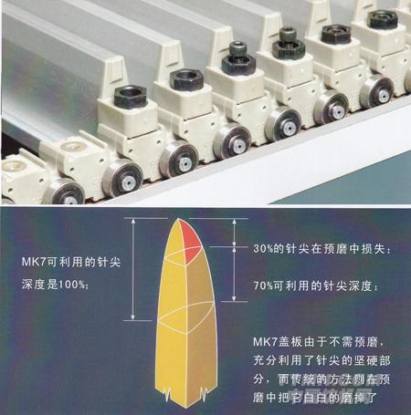 MK7蓋板由于不需預(yù)磨,充分利用了針尖的堅(jiān)硬部分,而傳統(tǒng)的方法則在預(yù)磨中把它白白的磨掉了。