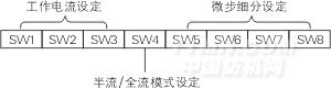 M860驅動器采用八位撥碼開關設定細分精度、動態電流和半流/全流。詳細描述如下: