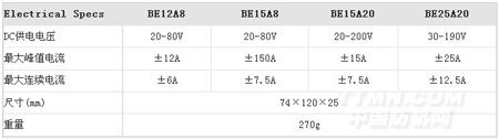 注:可驅(qū)動無刷DC伺服電機(jī)在電流環(huán)、電流環(huán)、速度環(huán)及位置環(huán)下工作,且具有四象限再生電功能,電機(jī)需帶霍爾傳感器,速度反饋可以來自霍爾傳感器,測試發(fā)電機(jī)或編碼器的信號。