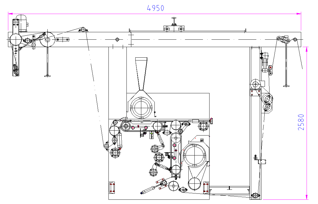 2.送布電機和出布電機采用變頻器調速,各段張力分別可調,速度快, 效率高,布速可在10-40米/分內任意選擇,數值由觸摸屏上直接顯示,各組導輥間張力可調。