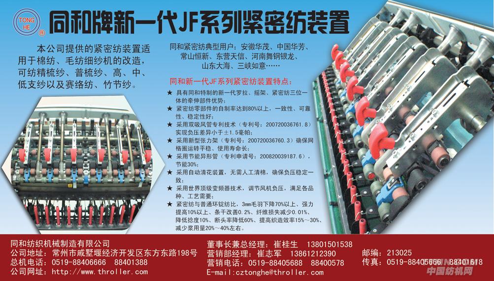 - [新聞]-->同和緊密紡細紗機 環(huán)錠紡紗技術(shù)領(lǐng)域新飛躍