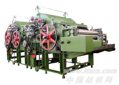 用途: 本機利用錫林、工作輥、刺毛輥、道夫之間的表面線速度、針布針向及轉向的各不相同,工作時對原料(化纖)進行混合開松梳理,制成一定重量的毛條有規律地圈繞在條筒內,供下道工序使用。
