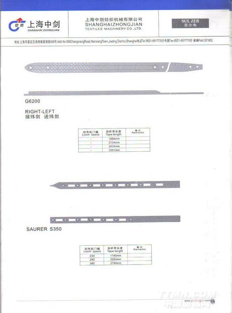 您所在的位置:紡機網 >> 上海市中劍紡織機械有限公司 >> 劍帶-蘇爾壽-G6200 Saured S350