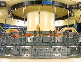 ■日本電子選針系統:用於下針筒之8段選針器,運用電腦控制可選擇出針或是平針。上針筒為使用外部可調整式菱角,簡易的手動調整半針或平針。依照客戶所需花型加以改變。