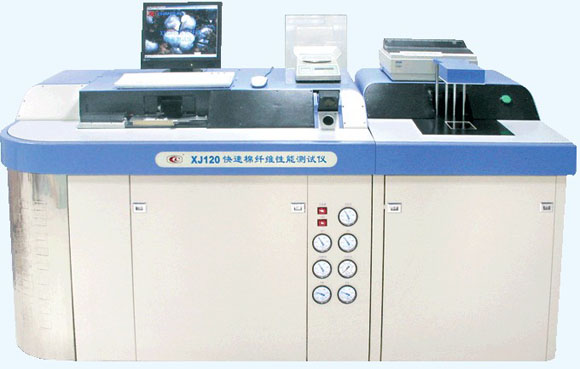 XJ120 快速棉纖維性能測試儀(High Volume Inspection 英文縮寫HVI)是集光、機、電、氣和計算機等技術為一體的高技術產品,能快速檢測出棉花纖維的長度、強度、成熟度、色澤、葉屑(表面雜質)、回潮率等,并能計算出短絨指數、色澤等級、雜質等級、可紡支數等指標。這些指標對棉檢部門客觀、公正地評價棉花品質、指導棉紡企業配棉、合理利用棉花原料,具有十分重要的意義。