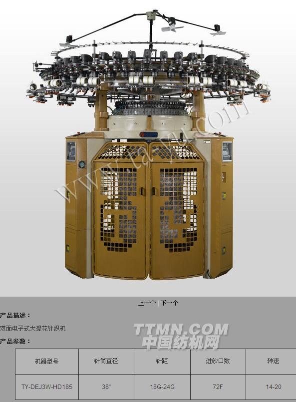 您所在的位置:紡機網 >> 大渝機械(廈門)有限公司 >> 雙面電子式大提花針織機TY-DEJ3W HD 185